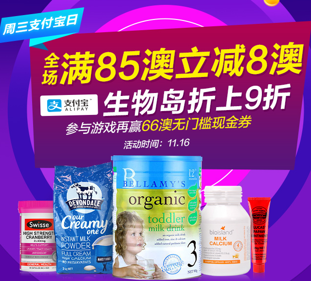 澳洲TOP级连锁折扣药房Pharmacy 4 less中文站狂欢HIGH不停周三支付宝日:全场满85澳立减8澳+生物岛折上9折(优惠码:BAL9)+参与微信游戏“刮刮卡”再赢66澳无门槛现金券!活动仅限支付宝日当天!有许多澳淘热品都非常值得入手。