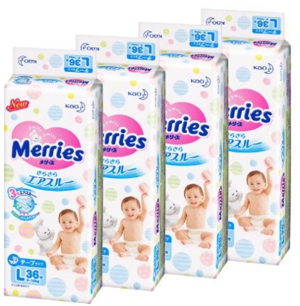 4、日本花王妙而舒 L码9-14Kg纸尿裤144枚(36枚*4),补货特价4240日元,约¥259