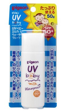 日本Pigeon贝亲的产品在妈妈圈子里是公认口碑好的 东西,天然又安全,这款婴儿防晒乳/防晒霜SPF50+,防晒指数50,宝宝旅游、爬山、游泳必须要用下哦,这款也是防水的,不留白残,延展性好,易于涂抹的乳液型UV皮肤保养用品,含有提取自南美的天然保湿成分,和防止皮肤粗糙的甘草成分、皮肤保养和防晒双重效果。超级推荐各位用心的妈妈给宝宝使用,如果大人的皮肤也很敏感的,那这款也可用。