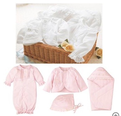 麦宝莲波形褶边和喇叭状4件套是高级的套装,采用温柔地包裹住宝宝笑脸的柔软彩棉制作而成。表面看过去,就可以清楚地看到柔软的抽针天竺棉4件套上的波形褶边和细皱褶的设计,简约又可爱,别具一格。寒冷的时候,马上可以穿上的开襟外衣是非常方便的一个搭配。