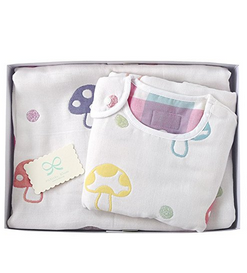 色彩鲜艳的蘑菇图案,男女宝宝均适用。10mois原创的可爱礼盒。适合作为新生宝宝的贺礼,是Hoppetta大受欢迎礼盒。6层纱睡毯,夏季干爽,冬季暖和。6层纱睡袋,采用密度不同的6层纱布重叠,柔软包裹空气,寒冷时发挥保温性,炎热时迅速吸汗保持干爽。睡觉时为防止着凉,可全年使用。