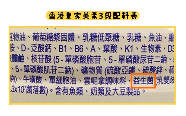 另外,香港皇家美素3段除了天然乳脂之外,还含有益生菌,益生菌可以帮助调节宝宝肠道菌群平衡,促进消化,增加肠道免疫力。