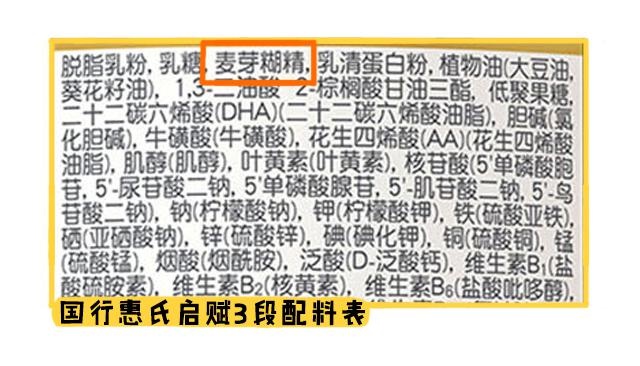 此外,启赋3段和4段添加了麦芽糊精,麦芽糊精和上面美赞臣所添加的玉米糖浆十分类似,都是比较好吸收的碳水化合物,但是营养价值比不上乳糖。