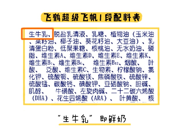 首先是奶源这块,我查看了两款奶粉的配料表,超级飞帆全段数都是使用鲜牛奶来生产。