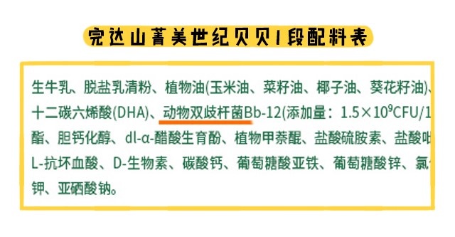 说完第一部分,接着就是营养的第二部分—特色强化配方,它指的是一些商家宣传自家奶粉特别添加进去的营养素。菁美世纪贝贝各段数只添加了一个益生菌,益生菌是肠道的有益菌,可以抑制害菌病菌的生长,调节肠道,促进宝宝对食物的消化。