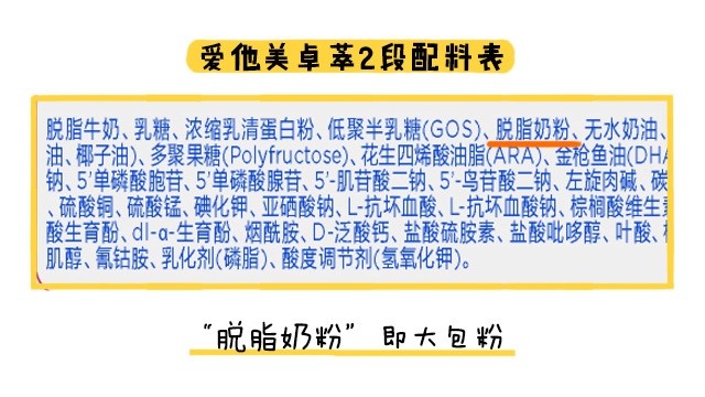 而爱他美卓萃是采用荷兰奶源,1段和3段是使用鲜奶生产,不过2段掺入了大包粉兑水而成粉还原奶,还原奶的加工工序比鲜奶多,因此新鲜度和营养保留度都有所下降。