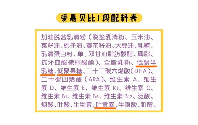 至于特色强化配方,它指的是一些商家宣传自家奶粉特别添加进去的,区别于其他品牌的营养素。爱嘉贝比全部段数都添加了叶黄素和益生元组合(低聚半乳糖+低聚果糖)。