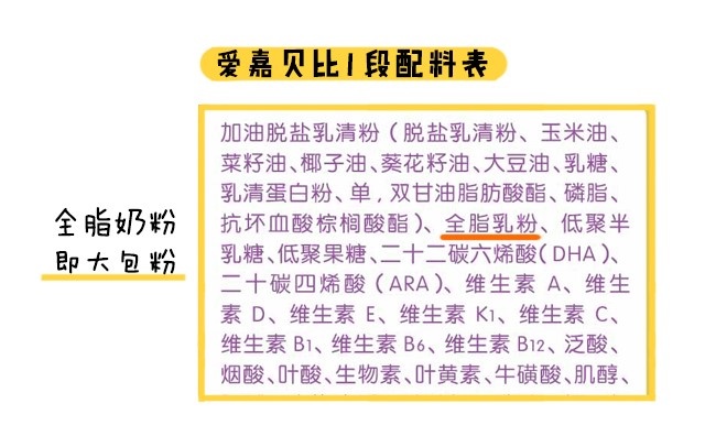 说完营养配方,接着继续说活奶源方面。爱嘉贝比采用中国奶源,使用大包粉兑水的还原奶生产,还原奶的加工步骤比起鲜奶多了一倍,不仅影响了新鲜度,营养素的流失也比更多些。还有,大家要留意一下,爱嘉贝比使用了全脂乳粉,对于初生宝宝来说,牛乳脂肪可能比较难消化。