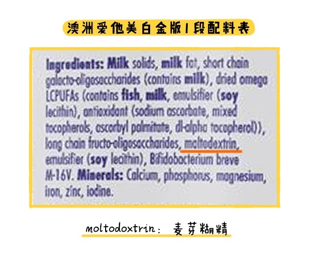 回到奶粉本身,澳爱白金全部段数所添加的麦芽糊精是个很好吸收的碳水化合物。