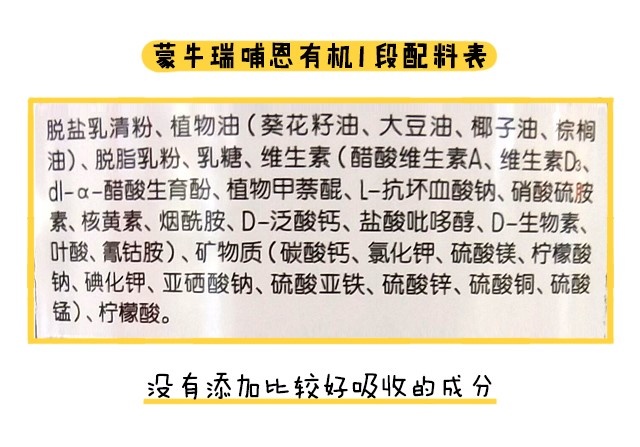 至于蒙牛瑞哺恩有机全部段数都没有添加比较好吸收的成分。