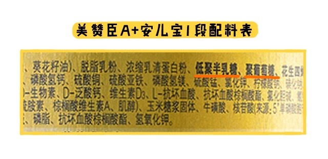 A+安儿宝1段也有益生元组合(2、3段没有),稍有不同的是A+安儿宝的益生元组合是“低聚半乳糖+聚葡萄糖”,