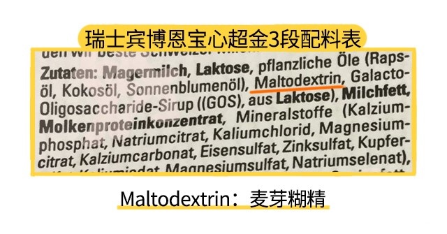 奶源和营养都说完了,最后在原料方面,恩宝心超金2段之后均含有麦芽糊精, 麦芽糊精不是什么有害物质,不是它的添加会降低乳糖在碳水化合物中的占比,而麦芽糊精的营养价值没有乳糖那么高。