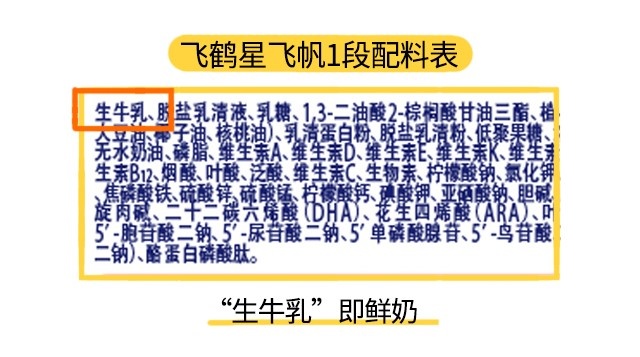 但是,星飞帆2段之后掺入了还原奶,还原奶一般是使用干湿混合工艺制作,即是先将新鲜牛奶制成大包粉,之后运输到奶源地以外的地区再兑水成还原奶,之后加入营养成分罐装成奶粉。