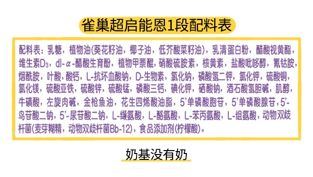 超启能恩是一款适度水解蛋白奶粉,算是半个特殊配方奶粉,可以用于预防蛋白质过敏,或缓解一些轻微蛋白质过敏症状。它和市面上其他普通婴幼儿配方奶粉最主要的区别在于奶基这块,普通奶粉的奶基是鲜奶或者是还原奶,而超启能恩的的奶基没有“奶”,而是在牛奶中提取并经过适度水解的蛋白质作为奶基料。