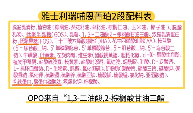 至于特色强化配方,特色强化配方是指商家们宣传自家产品特别添加进去的别人没有的营养素。瑞哺恩各段数是添加了OPO、酪蛋白磷酸肽、乳铁蛋白、益生元组合(低聚半乳糖+低聚果糖)、叶黄素、a-乳清蛋白。