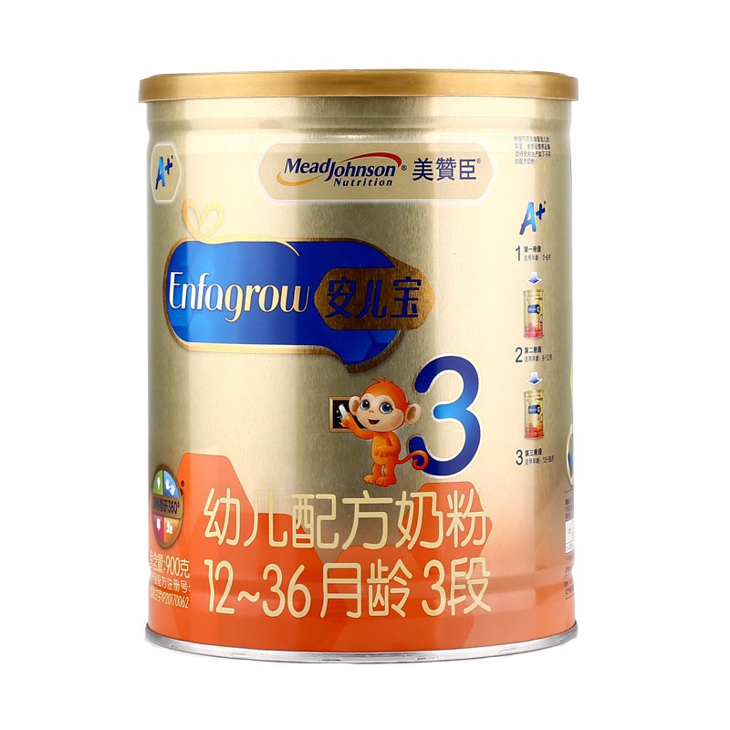 美赞臣奶粉是出了名的DHA含量高,A+安儿宝各段数的DHA添加量均比市面奶粉的平均水平多出不少,可惜A+安儿宝3段缺乏有助提高宝宝思维的ARA。奶源方面,A+安儿宝是购买欧洲大包粉后运回中国工厂重新兑水成还原奶制成,新鲜度不怎么样。原料也不怎么理想,所有段数均含有棕榈油和玉米糖浆,棕榈油会影响钙吸收,还会使大便变硬而更难排出,增加了便秘的几率。玉米糖浆的添加和麦芽糊精很接近,都是为了取替部分乳糖的占比,从而降低成本,但玉米糖浆的营养价值比不上乳糖。此外,A+安儿宝3段还额外加入了香精以及白砂糖。