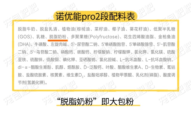 诺优能pro 2段采用荷兰奶源,奶基在鲜奶的基础上,掺入了大包粉兑水而成的还原奶,还原奶经过二次加工,奶粉的新鲜度和营养保留度都有所下降。
