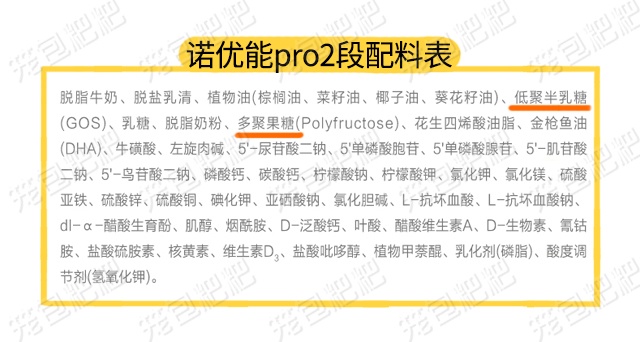 这两个成分会使冲出来的奶粉又香又甜,能挑起宝宝的食欲,从而增加奶量,但一旦宝宝习惯了口味较重的奶粉,之后对口味比较清淡的奶粉或者是食物可能会产生抗拒,不利于宝宝培养清淡健康的饮食习惯。诺优能pro 2段没有加入香精及白砂糖。