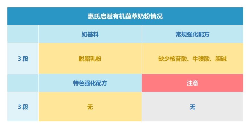 以下表格是惠氏启赋有机蕴萃3段奶粉配方中的特色成分和注意成分。