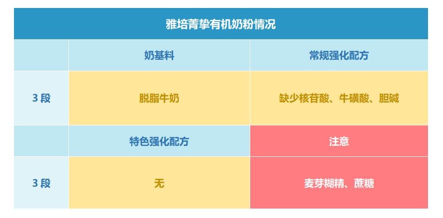 以下表格是雅培菁挚有机3段奶粉配方中的特色成分和注意成分。