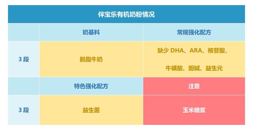 以下表格是伴宝乐有机3段奶粉配方中的特色成分和注意成分。