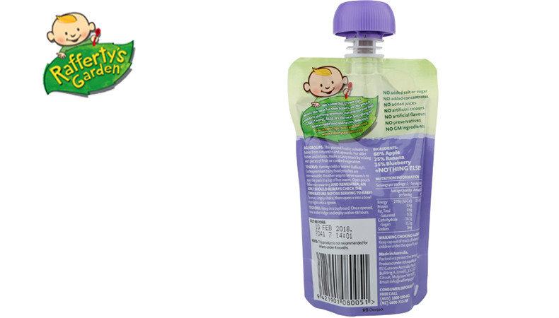 - 外文名称 :Rafferty's Garden Blueberries, Banana & Apple Smooth Baby Food (4M+) 120g