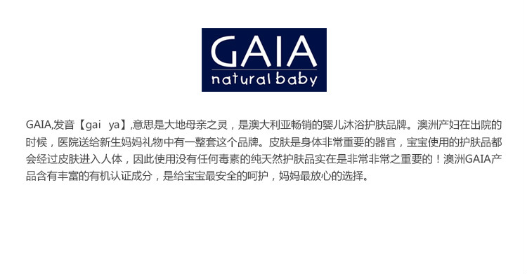 - 中文名称 :Gaia 婴儿安抚保湿沐浴露 250ml