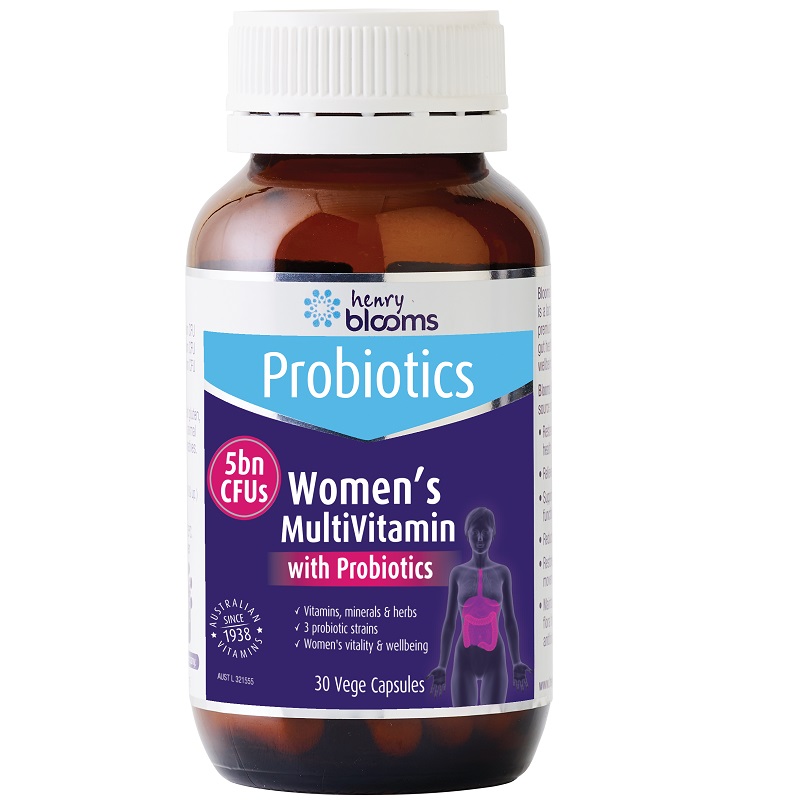 Blooms 女士益生菌复合维生素胶囊,优质的多功能产品,结合了多种维生素和3种益生菌菌株,可实现最佳肠道健康。 不含麸质和乳糖,素食主义者也可放心使用,含有必需的维生素和矿物质,有助于补充日常营养所需。添加铁和B维生素,用于产生身体日常所需能量。 蔓越莓和维生素C能够帮助保护细胞免受自由基破坏,支持尿路健康,含有的铬元素维持正常血糖水平,每个胶囊含有50亿个CFU的益生菌。