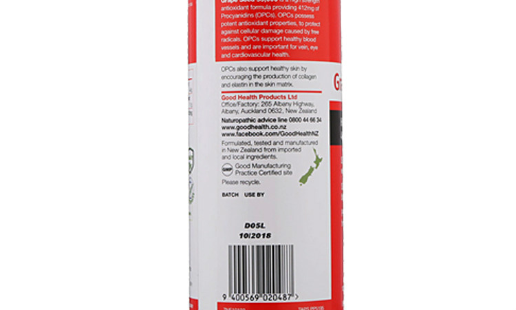 - 外文名称 :Good Health Grape Seed 55000 Cap X 120