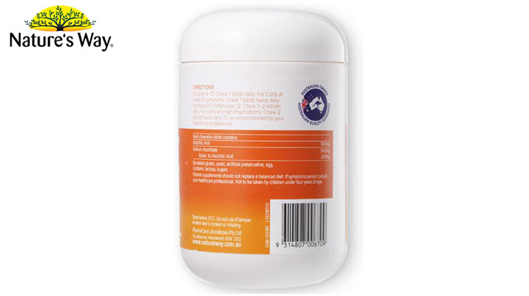 - 外文名称 :Nature's Way Vitamin C 500mg Sugarless Chewable Tab X 300