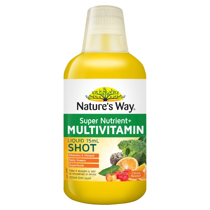 Nature s Way 超级维生素营养液富含维生素、矿物质和抗氧化剂以及9种超级食品和蔬菜浓缩物(包括西兰花、西印度樱桃和螺旋藻)一起精心配制,营养丰富,易吸收。可作为保健品,在早上饮用可以使您的一天变得更加充实,也可以作为下午的营养补充,无论是直接服用还是混入冰沙或饮料中,都是理想的选择。