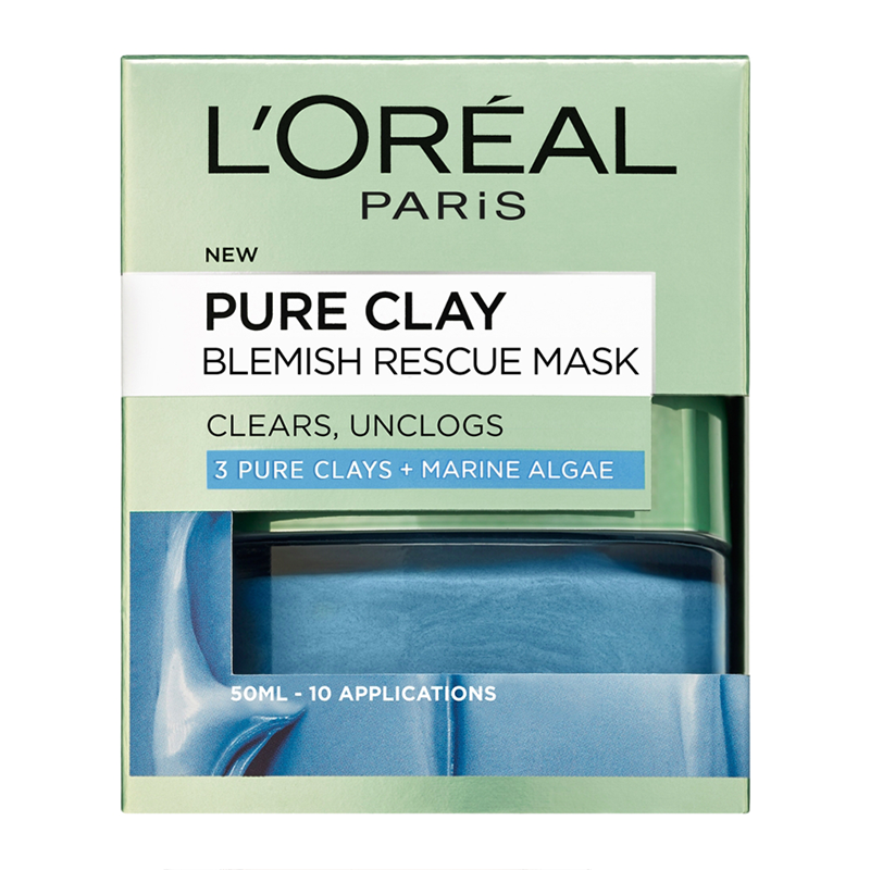 L Oreal Paris Pure Clay Blemish Rescue Mask features a powerful blend of 3 Pure Clays combined with Marine Algae Extract
