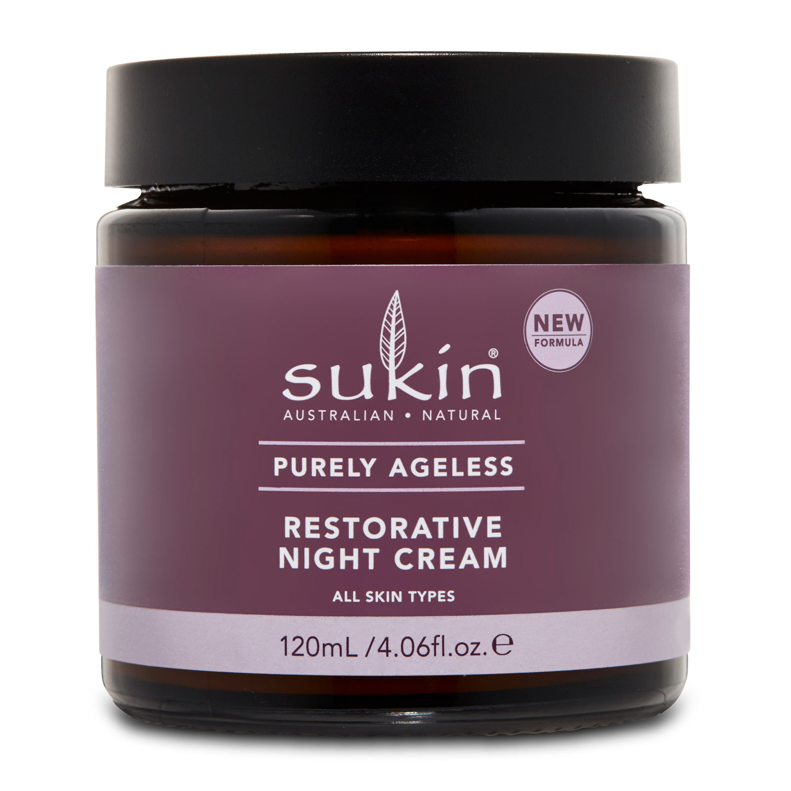Sukin Purely Ageless Restorative Night Cream nourishes and rejuvenates the skin while you sleep with a blend of Pure Ribose, Macadamia Oil and Cocoa Butter, resulting in visibly firmer skin after just 14 days With added White Hibiscus and Baobab this rich cream helps to improve skin elasticity and fight the signs of ageing