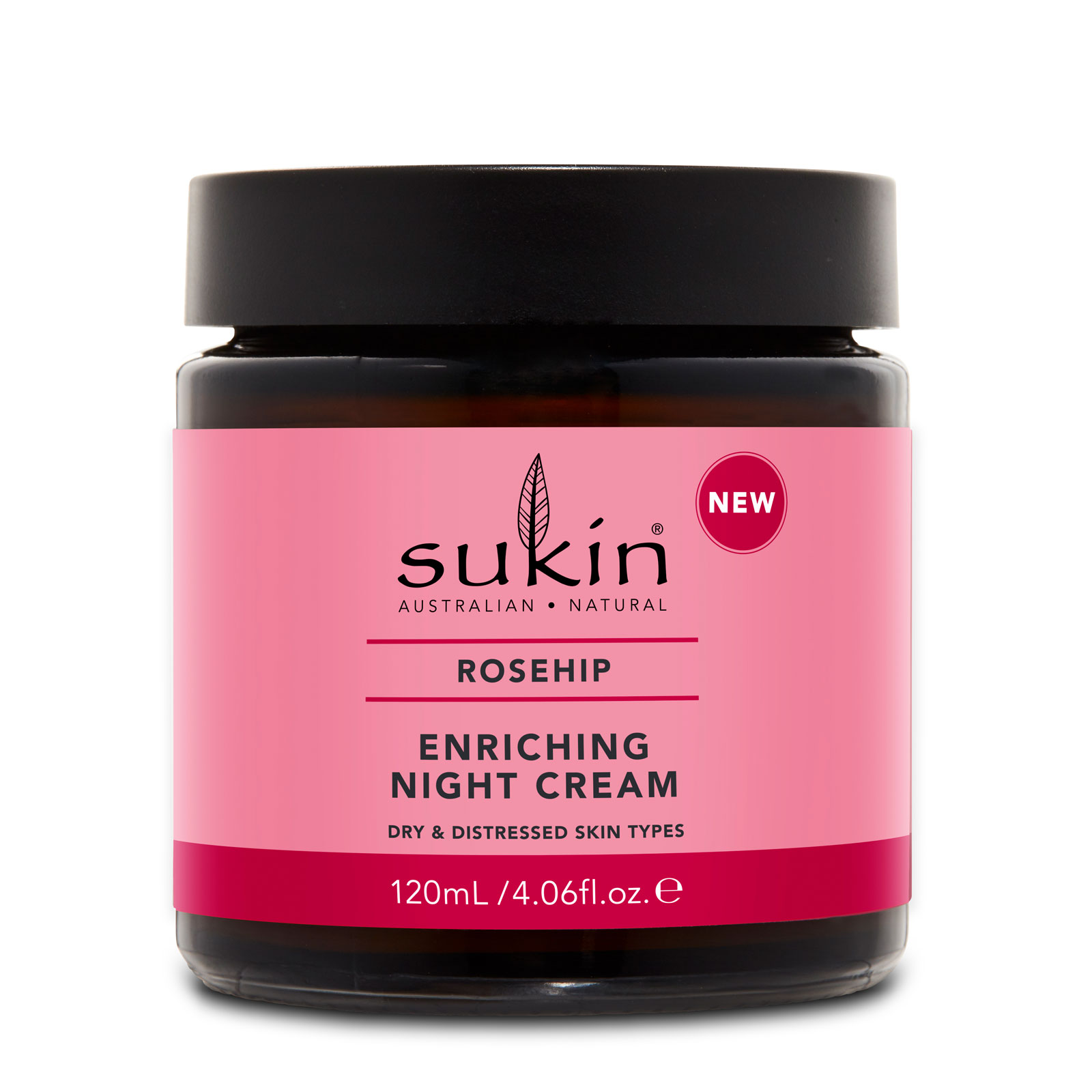 Sukin Rose Hip Enriching Night Cream is enriched with Rosehip and Kakadu Plum to provide long and short-term hydration, while Quandong, Camellia and essential fatty acids work to revitalise tired skin, leaving your skin feeling rejuvenated and radiant each morning