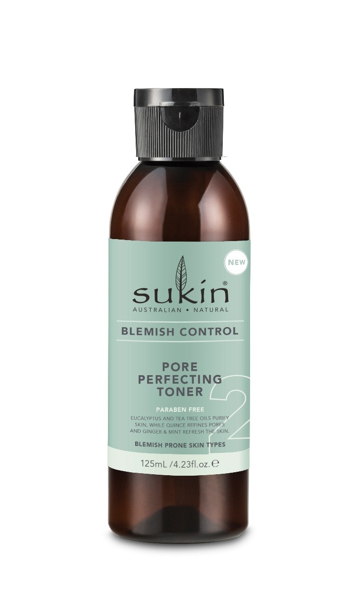 Sukin Pore Perfecting toner features Eucalyptus and Tea Tree Oils to purify the skin, whilst Quince refines pores and limits skin shine Eucalyptus helps to reduce the prevalence of acne causing bacteria on the skin and reduce the appearance of redness associated with breakouts
