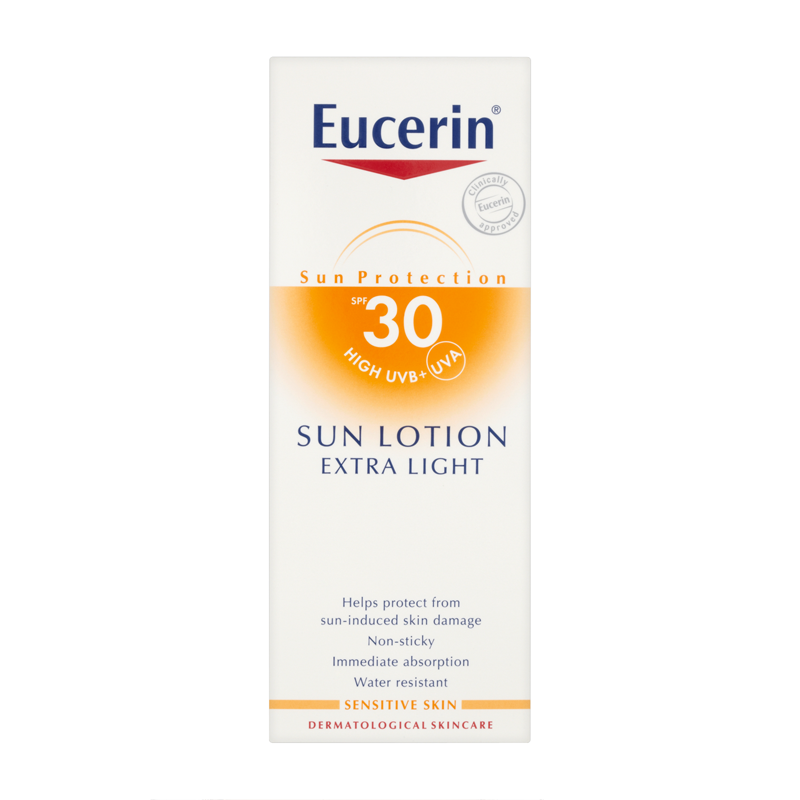Eucerin 优色林 水润清爽防水防晒乳液 SPF30,防止肌肤免受太阳损伤,特别是敏感肌肤。净含量150毫升。