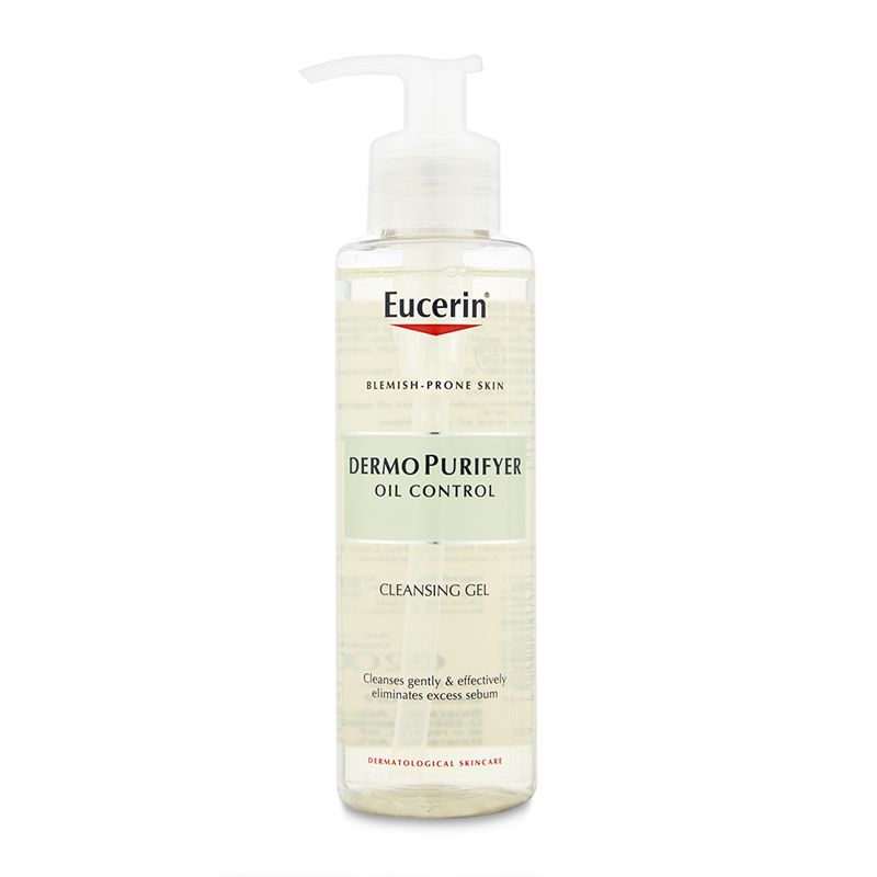 Eucerin Dermo Purifyer Oil Control Cleansing Gel effectively, yet gently eliminates excess sebum while removing dirt and make-up thanks to its soap-free formula with 6% Ampho-Tenside It leaves the skin feeling clean, fresh and supple
