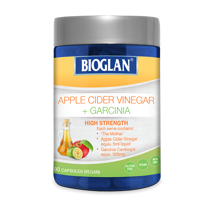 Bioglan Apple Cider Vinegar + Garcinia: can be taken with the Bioglan NutriSlim Low Sugar Shake energy reduced meal plan and fitness program to work towards a healthy weight All the benefits of Apple cider vinegar and garcinia without the taste and only 3 capsules per day