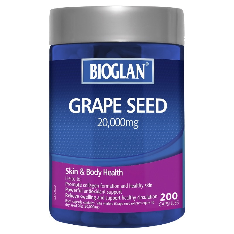 Bioglan 葡萄籽胶囊 20000mg(抗氧化)中的葡萄籽的主要提取物是原花青素(OPC),具有美白祛斑的功效:因为原花青素具有抗氧化能力,是维他命E的50倍,是维他命C的20倍,能延缓老化,预防动脉硬化,也有皮肤维他命之称,具有脂溶性及水溶性的特质,具有的美白祛斑作用。