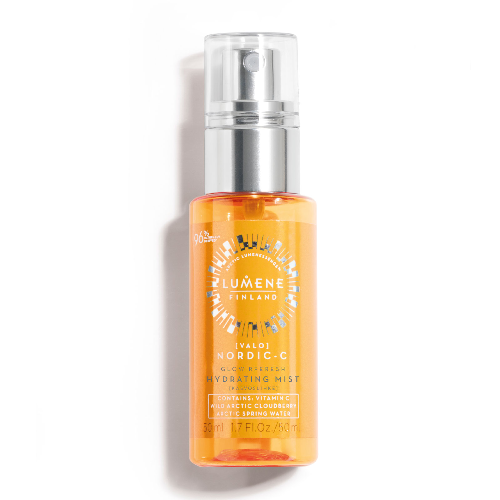 This Lumene Nordic C [Valo] Glow Refresh Hydrating Mist has been designed to help hydrate the complexion for a fresh-spring face Contains the unique radiance enhancing Nordic-C complex with antioxidant-rich wild Arctic cloudberry and vitamin C, along with pure Arctic spring water for an instant hit of hydration
