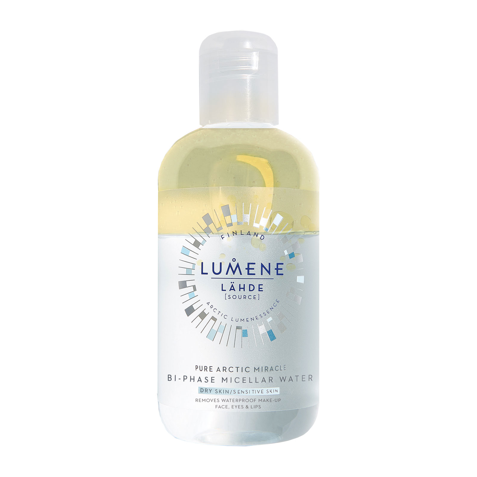 This Lumene Nordic Hydra Pure Arctic Miracle Bi-Phase Micellar Water is infused with replenishing organic Nordic birch sap, pure Arctic spring water and Nordic berry oil to capture impurities and remove even the toughest waterproof eye, lip and face make-up